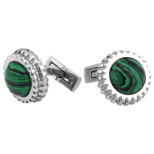 crafted in rhodium ion-plated stainless steel with piece of malachite stone on head