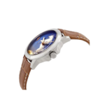 Silver-tone stainless steel case with a brown leather strap.